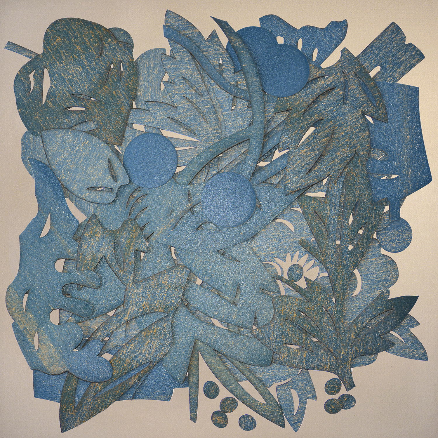 Pigmenti di legno su collage di carta vetrata usata